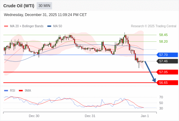 在 57.70 之下,看跌,目标价位为 57.05 ,然后为 56.65 。