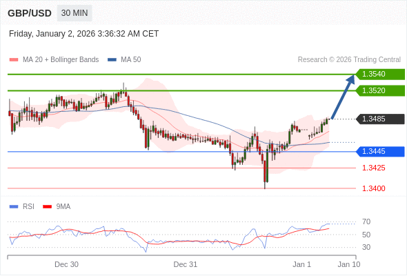 在 1.3445 之上,看涨,目标价位为 1.3520 ,然后为 1.3540 。