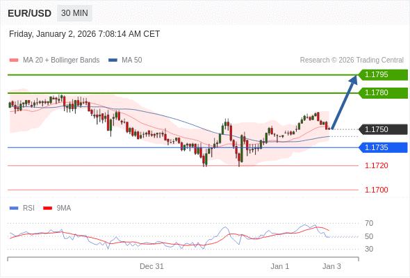在 1.1735 之上,看涨,目标价位为 1.1780 ,然后为 1.1795 。