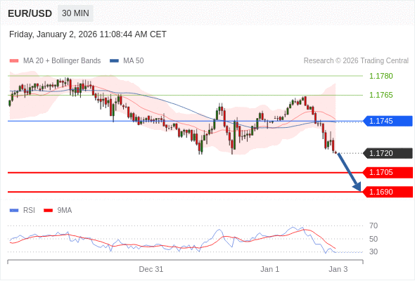 交易策略: 在 1.1745 之下,看跌,目标价位为 1.1705 ,然后为 1.1690 。