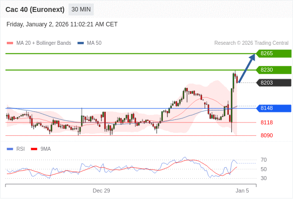 在 8148 之上,看涨,目标价位为 8230 ,然后为 8265 。