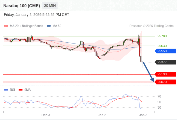 交易策略: 在 25550 之下,看跌,目标价位为 25190 ,然后为 25070 。